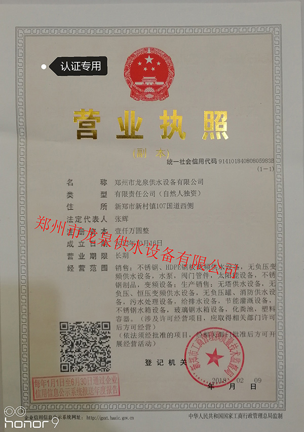 鄭州市龍泉供水設(shè)備有限公司